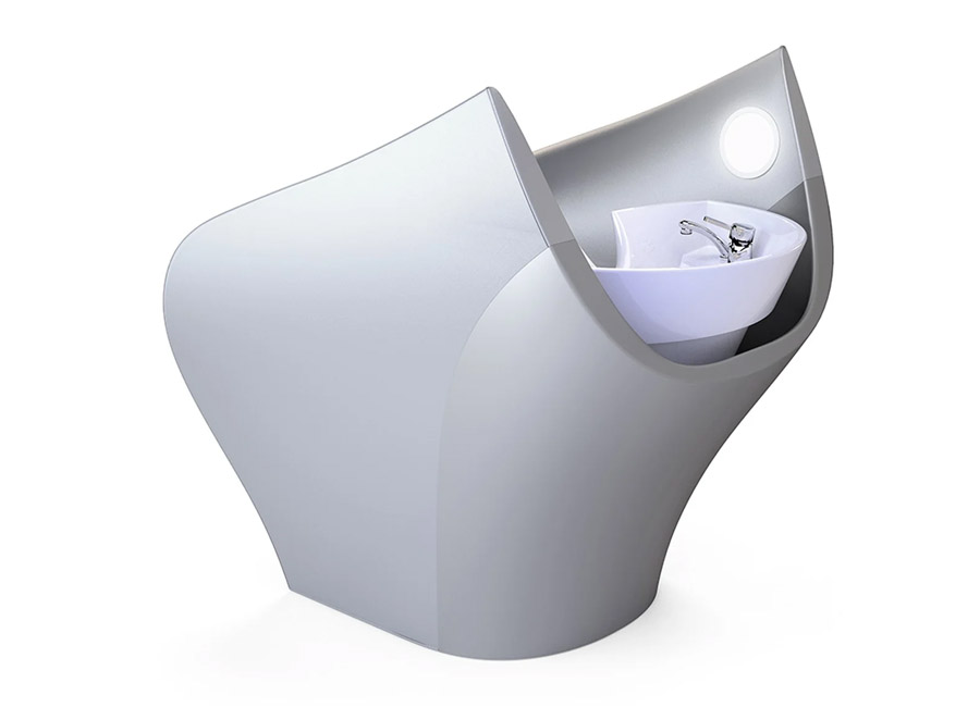 Beauty flower is a shampoo station with tilting and sliding bowl, full body and leg raising system. It is available in Red, Grey and Black versions.