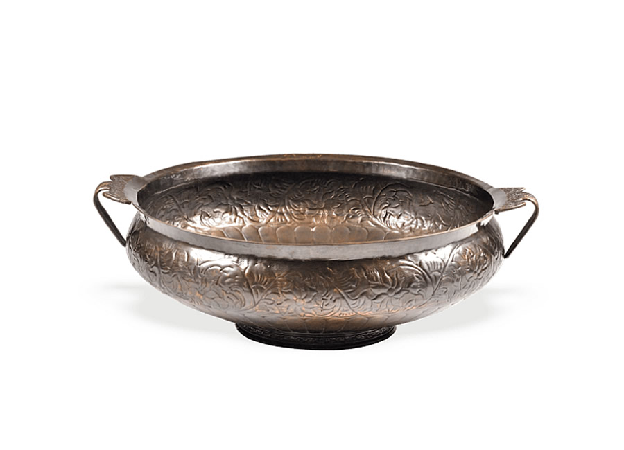 This urli is patterned after the classic Indian design with integrated handles and an attractive tapered silhouette. Made out of the finest quality brass, giving it rich color and an attractive, sleek shine.This Urli can be used to placed on an altar, displayed empty or filled with water to float candles or flowers.Measures 24 inches in diameter by 4.5 inches in height, so it stands out but is still easy to display anywhere.Produced with traditional sand casting techniques in India.