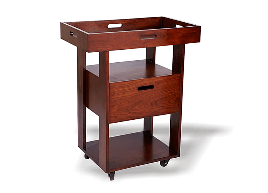 Kumkum spa trolley has been manufactured with multiple storage options for a day spa. The top tray has been designed to store spa oils, creams and lotions. The open space beneath the top tray can hold face towels and then a decent size sliding drawer to store other spa essentials. The space at the bottom can be used to place an aroma oil burner. Manufactured with solid hardwood frame structure and decorative wood veneer, there are castor wheels for easy and noiseless movement.