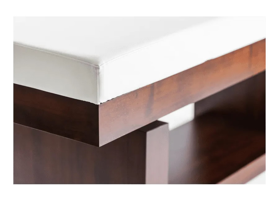 There is a face hole cutting and face hole plug inside the mattress. We used molded polyurethane mattress for cushioning, soft to touch fire retardant grade leatherette, Italian PU or Aqua Base Coatings. Esthetica offers a wide range of natural wood veneer selection for this massage table.