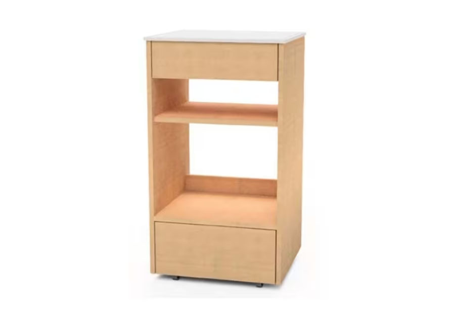 Oakworks Slimline Trolley is the perfect choice when space is at a premium. The small footprint, customizable storage options, and casters along with the versatile design, ensure you can get all of your important items near you while you work. The high quality solid surface top, dimmable work light, and a convenient pull out work shelf to expand work surface makes this the most versatile trolley in our line.