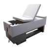 Rectangular massage table with electric bed height adjustment and manual adjustment of the backrest position.