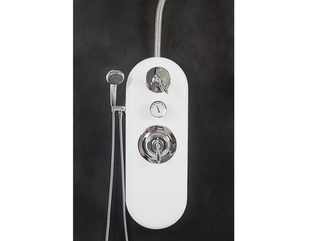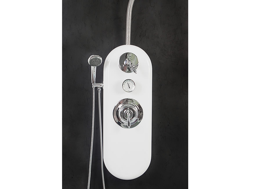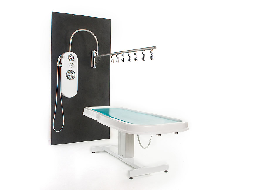 The control panel has a High-Flo pressure-balancing mixing valve with anti-scald protection that provides a safe, comfortable experience by maintaining a proportioned mix of hot and cold water for any desired temperature. The ¾” valves and supply lines provide maximum water flow. The temperature gauge allows the technician to maintain just the right temperature of water. The adjustable hand shower allows the opportunity for augmenting treatments and is also a great tool for product clean-up on the guest.